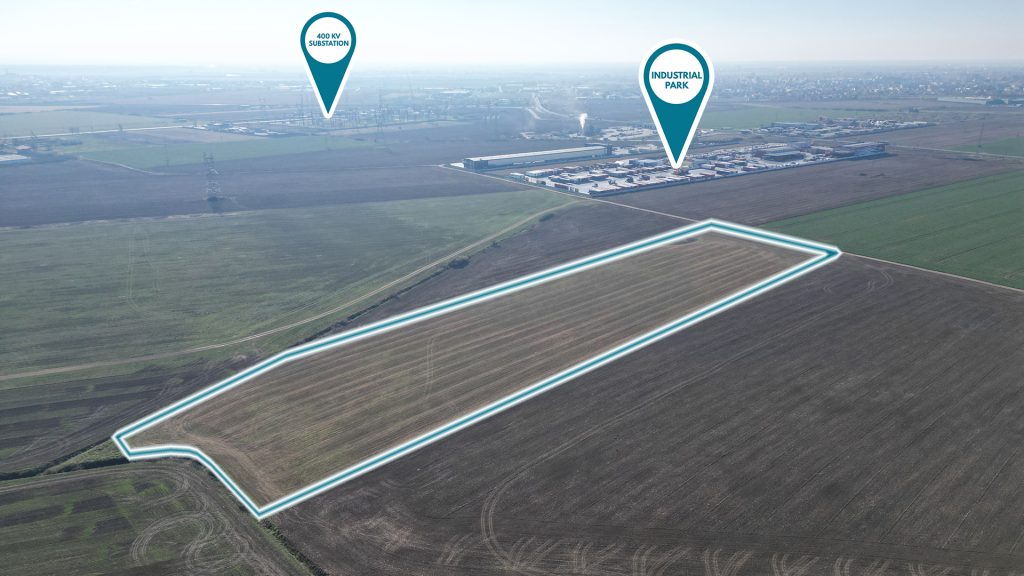The land is completely flat, with a total area of 37,100 sqm, and is located in the industrial area of Arad East, behind an industrial zone. The property has a 100-meter frontage on an agricultural road and is situated 350 meters from a concrete road accessible to trucks and 950 meters from the Arad Ring Road. This land is particularly special because it is only 700 meters in a straight line from the 400 kV substation, significantly increasing its chances of obtaining a grid connection permit (ATR) under the best financial, logistical, and time-efficient conditions.